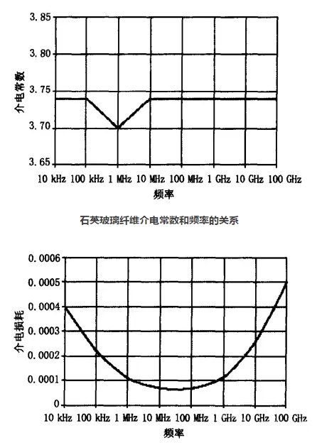 石英玻璃纖維有著優(yōu)越的電絕緣性,它的介電常數(shù)和介質(zhì)損耗系數(shù)是所有礦物纖維中最好的。石英玻璃纖維介電常數(shù)、介質(zhì)損耗系數(shù)和頻率的關(guān)系。
