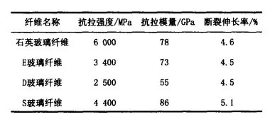 石英玻璃纖維的抗拉強(qiáng)度是普通玻璃纖維的3倍,它和玻璃纖維的抗拉強(qiáng)度、抗拉模量和斷裂伸長(zhǎng)率比較見下表。