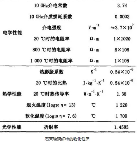 從表中可以看出,石英玻璃纖維的成分基本上就是高純石英玻璃的成分,其性能非常接近石英玻璃的性能,石英玻璃的物化性能。